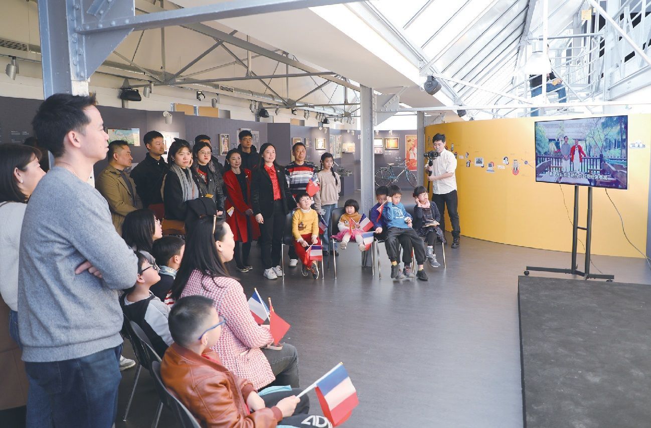 从事计算机工作的彭宇夫妇带着女儿和两个儿子一家5口来看展览。彭宇表示,希望让孩子们感受一下中法友好的氛围,从我做起,为中法友谊贡献一份力量。