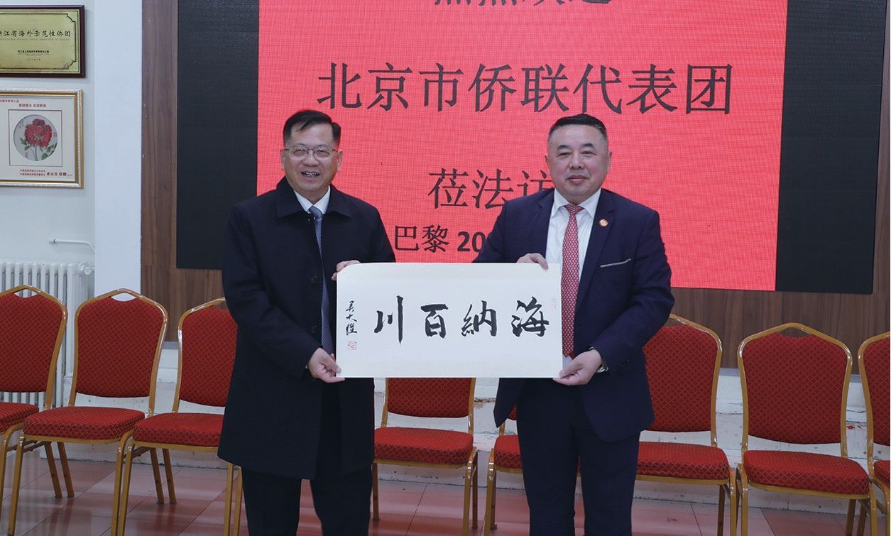 蔡君柱向代表团介绍了法国华侨华人会半个多世纪的历史、发展及所做的工作。法国华侨华人会是中法建交后的第一个华人社团,同时也是全法会员最多、影响最大的华人社团,会员有1200多人,2016年获得“华社之光”荣誉,也是国务院侨办在法国的“华助中心”。协会始终与中国同呼吸共命运,维护民族大义和侨胞权益,积极开展华文教育,担当中法交流和友谊的桥梁和纽带,为树立大国侨民形象,促进当地经济建设和民心相通,做了大量卓有成效的工作。协会愿意以北京市侨联代表团访问法国为契机,进一步加强和北京市侨联的联系与合作,讲好北京故事,助力首都发展,在企业联通、人才推荐、科技合作等方面努力发挥自己的独特作用。