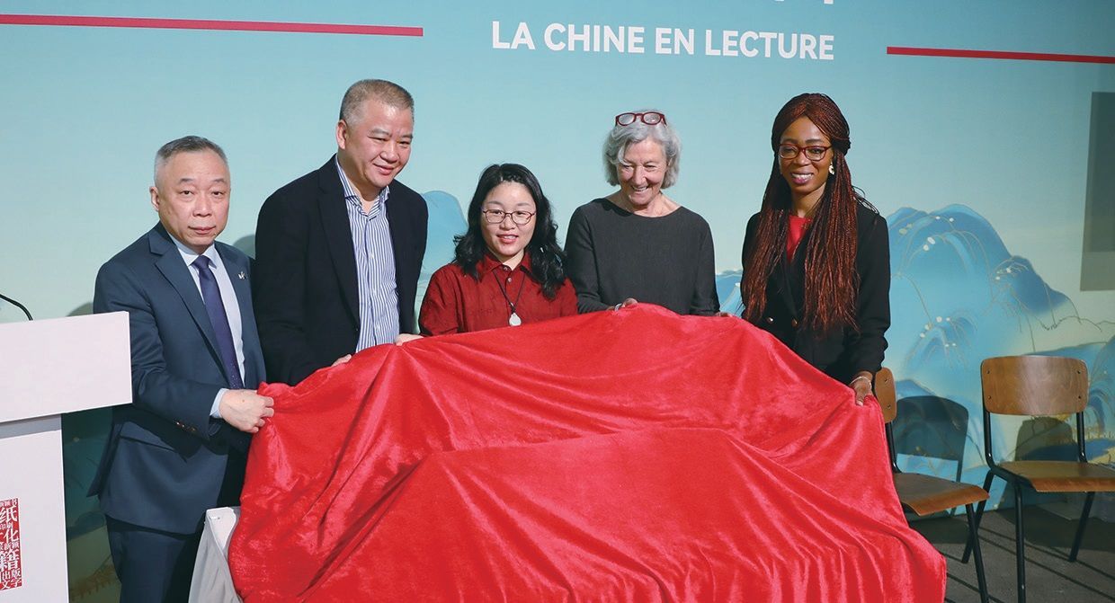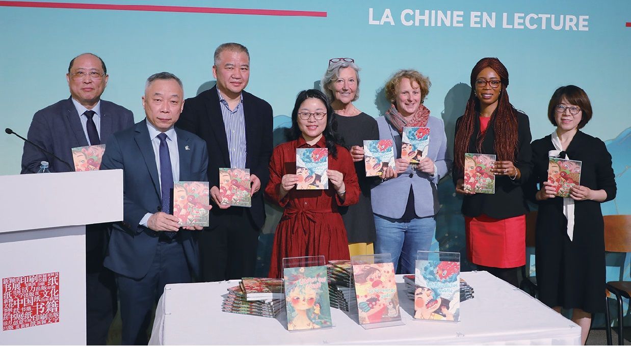 浙江出版联合集团董事长程为民、欧洲时报文化传媒集团总裁钟诚,作家汤汤、乐贝尔-农喀,娜塔莉·博登共同为“奇幻童年故事本”法语版新书揭幕。