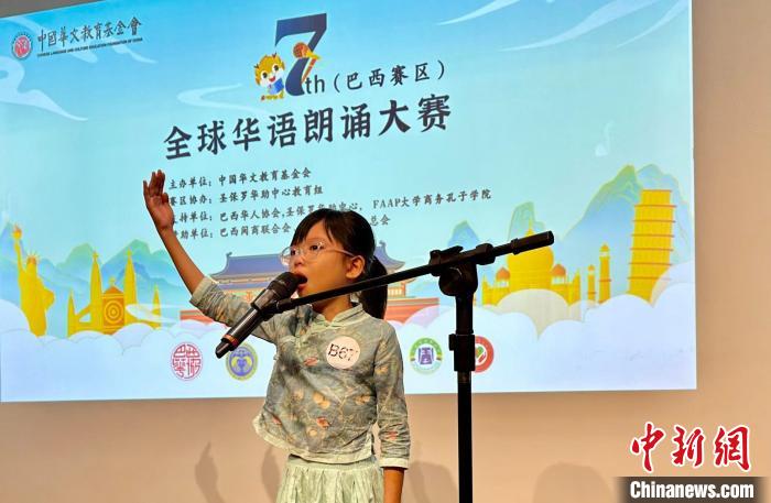 中新网报道,巴西幼华双语学校的小学生陈浩俊朗诵着中国大陆诗人流沙河唱和中国台湾诗人余光中的著名诗篇《就是那一只蟋蟀》,站到了第七届全球华语朗诵大赛巴西赛区的舞台上。