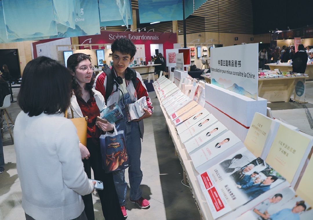 来自北京、浙江、河北、上海等地的59家中国出版社参加本届巴黎图书节,展销图书包括文学、中国传统文化、童书等多个种类。许多参观者在中国展区驻足翻阅,购买图书。