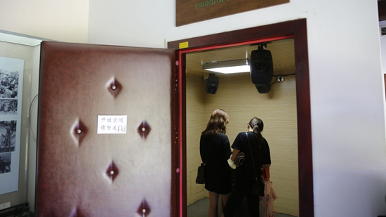 2021年7月8日,参观者在北京史家胡同博物馆内体验秦思源的“胡同声音”装置。
