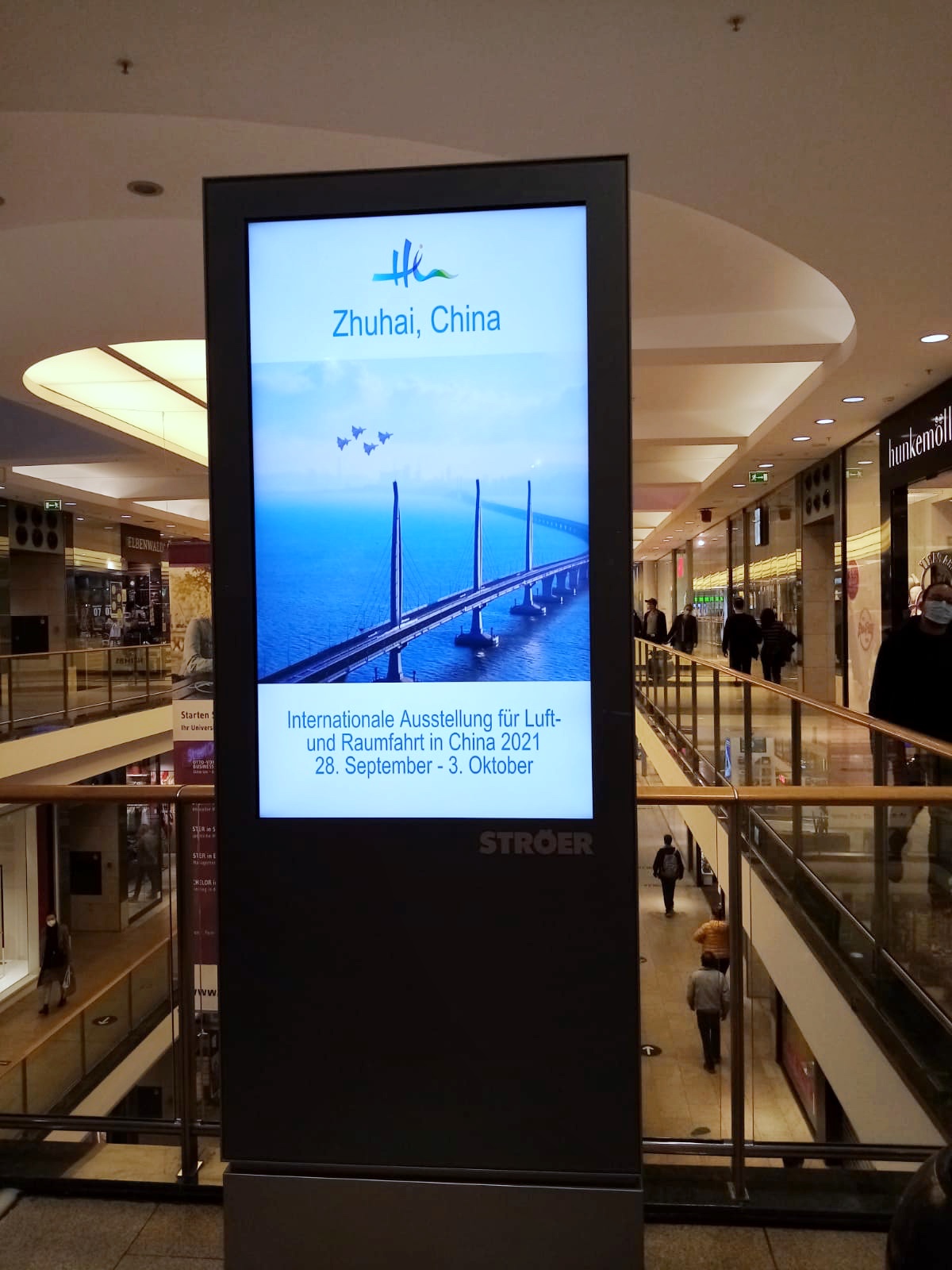 航展期间,珠海形象短片在布伦瑞克Schloss-Arkaden购物中心33块电子屏上同时播出。