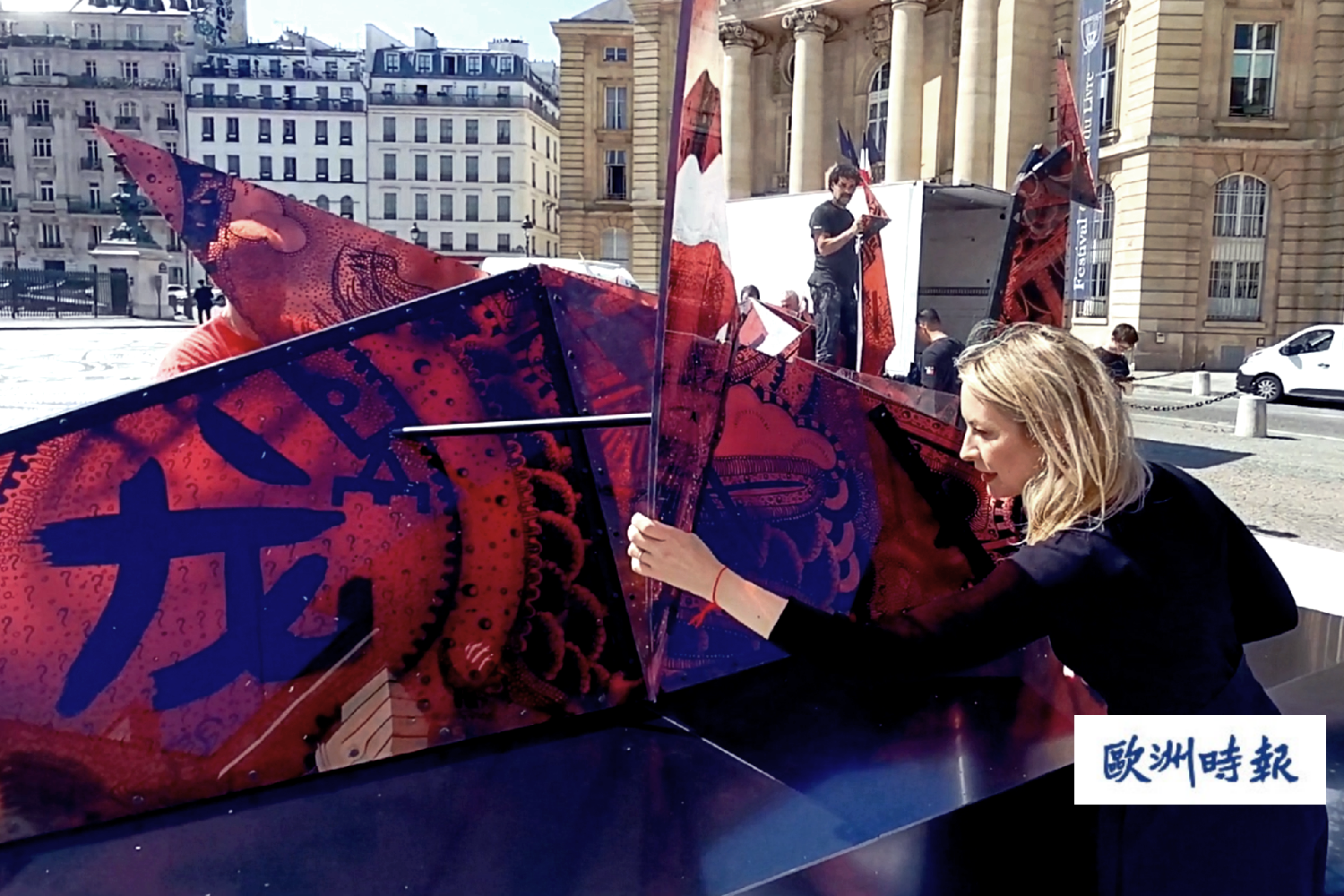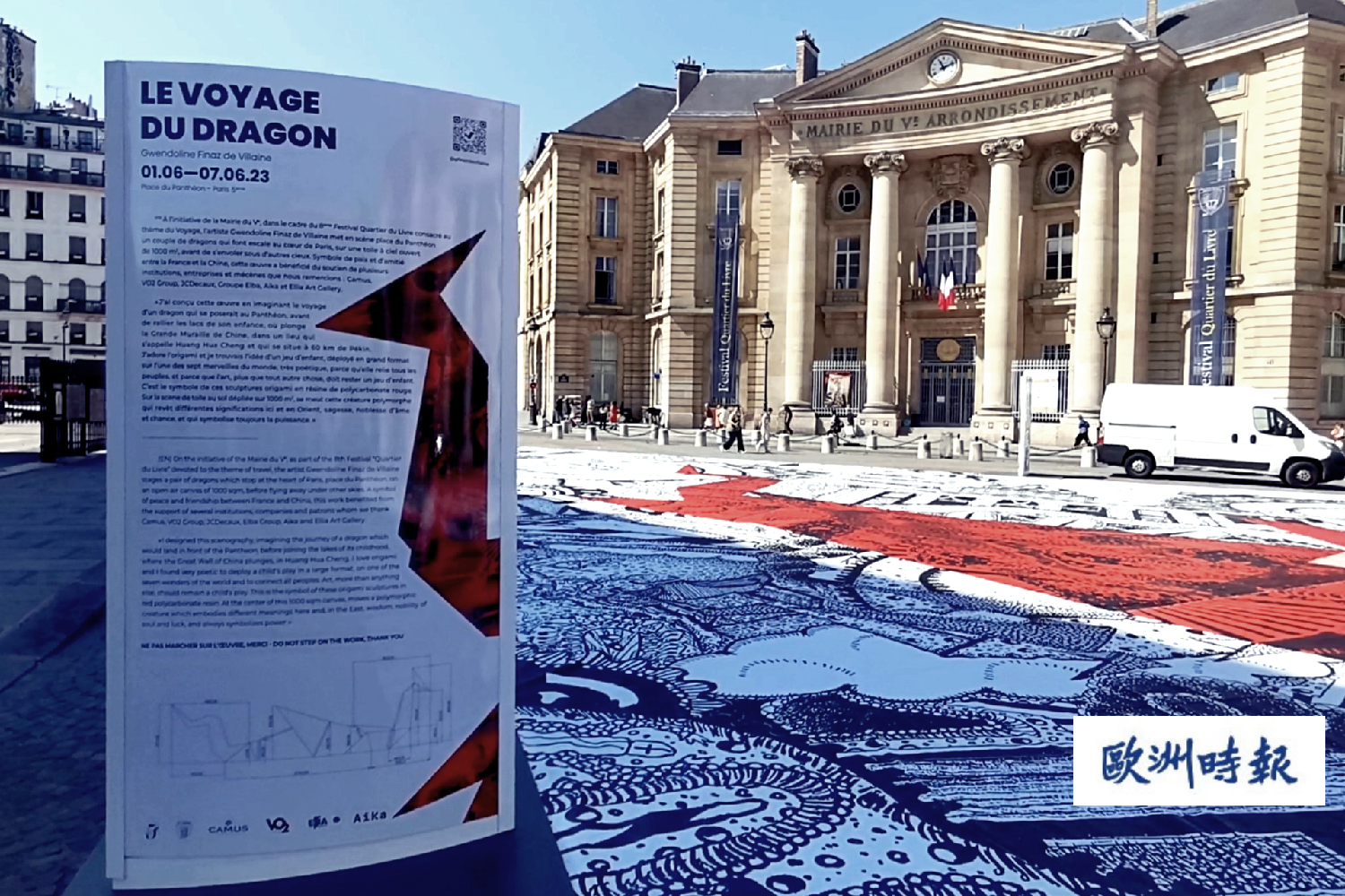 (欧洲时报记者欧文报道)法国当地时间6月1日中午,法国艺术家德维莱纳(Gwendoline Finaz DE VILLAINE)在巴黎先贤祠广场宣布,“中国龙”之旅正式开启。中国驻法大使卢沙野、文化公参严振全、巴黎5区区长贝赫图(Florence BERTHOUT)、欧洲时报文化传媒集团总裁、欧洲时报社长张晓贝以及法华政治、经济、文化和艺术等各界人士莅临启动仪式。
