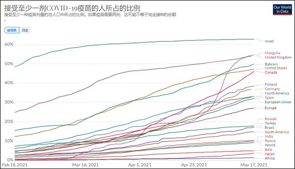 数日以来,欧洲国家紧随美国之后,也开始出现施打疫苗速度下降的现象。不肯或预约之后不去打疫苗的现象也开始浮现。(只有法国逆势上扬)个人觉得,应当大力推行疫苗护照,再加上各种凭健康码出行的防疫豁免,反之则施加种种限制。这样对不肯打疫苗者,就会形成很大压力。最终应当还是可以达到群体免疫需要的门槛。