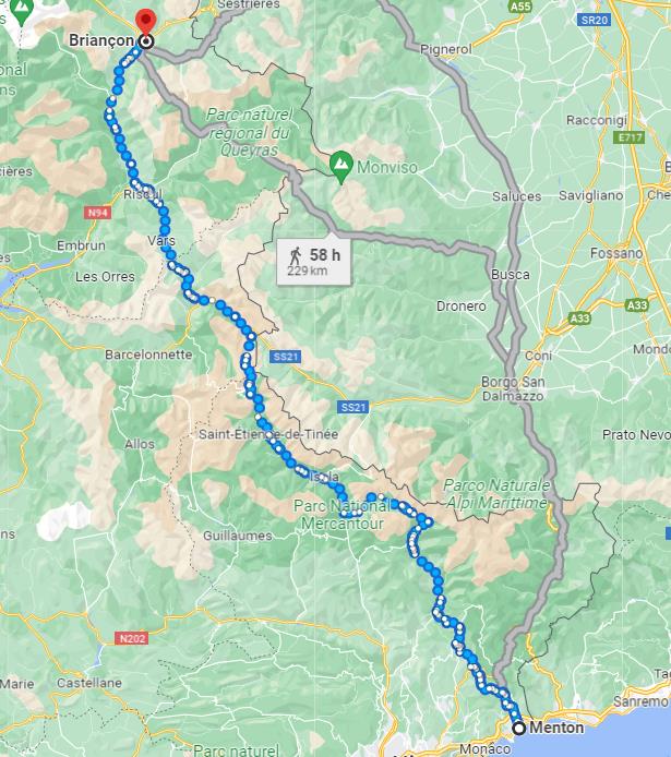 每年都有很多移民穿越阿尔卑斯山抵达布里扬松,之后再乘车前往法国其他城市。谷歌地图显示,从芒通步行至布里扬松直线距离229公里,耗时58小时。(谷歌地图)
