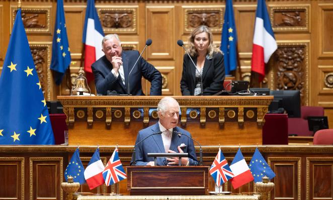 9月21日,英国国王查尔斯三世在法国参议院发表演讲。(法国参议院官网图)