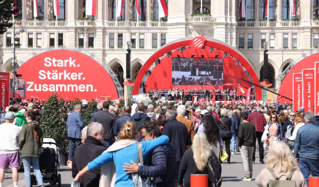 【欧洲时报记者Mika报道】五一国际劳动节是奥地利社会民主党(SPÖ)的传统节日。这一天,维也纳各区、各机构组织的社民党人都会从四面八方游行至维也纳市政厅广场聚会,重申政见,为竞选拉票。