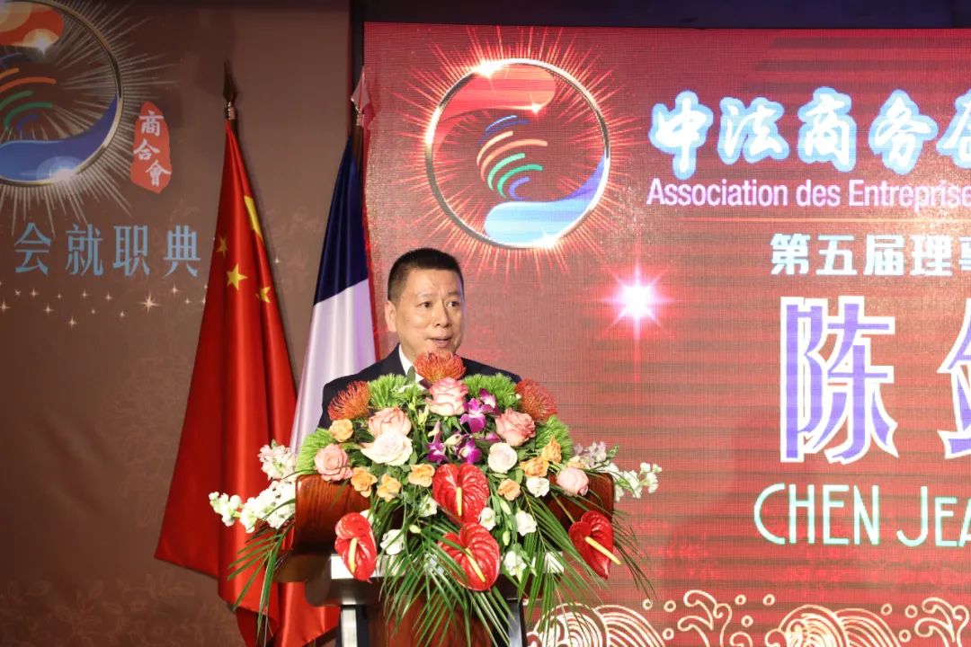 会印交接仪式后,新任会长陈剑靖作就职演说,他表示,中法商务企业合作协会于2009年8月在法国注册成立。商合会以团结合作,共同发展为宗旨,其中心任务是集合有效资源,搭建中法商业交流平台,促进中法两国企业在商业,、贸易领域的合作,为企业家在中法两国的发展提供更广阔的空间。