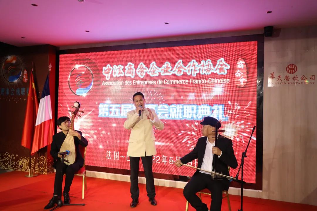 在晚会上,副会长映雪宣读了浙江省侨联、云南省侨联等部门的贺电;旅法画家程益康向商合会赠送了自己的最新作品表示祝贺;在著名二胡演奏家果敢和琵琶演奏家刘轶青的伴奏下,林相伟激情朗诵了《将进酒》;华侨华人会艺术团为庆典献上了精彩的民乐和歌舞;华为与法鑫酒业赞助了精美的礼品,抽奖环节为晚会增添了更多的欢乐气氛。