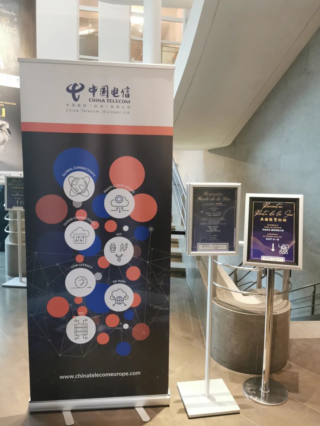此次丝路经贸论坛由中国电信法国公司和法语国家商务论坛在法国吉美博物馆共同举办。