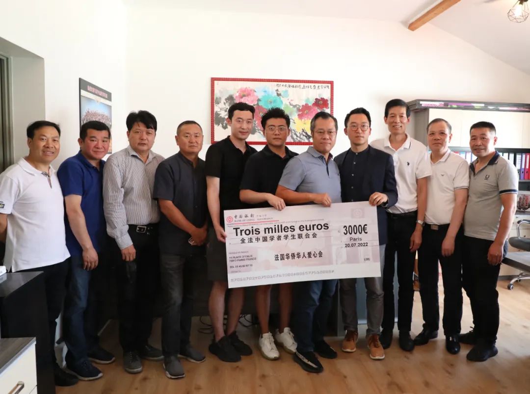 法国华侨华人爱心会向“全法学联”捐赠善款。(图片来源:本文图片皆由欧洲时报记者孔帆 摄)