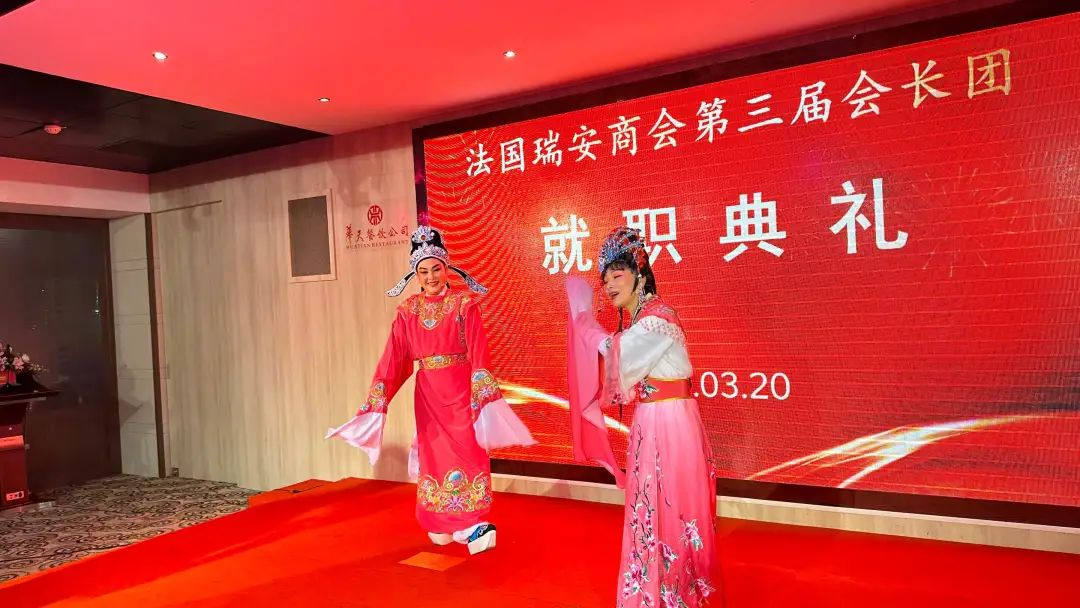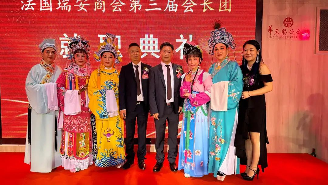 【欧洲时报记者孔帆报道】3月20日,巴黎华天中国城大酒店一片欢乐气氛,越剧、京剧、折子戏轮番上演,法国瑞安商会第三届会长团就职典礼在这里隆重举办,周海胜荣任第三届会长。