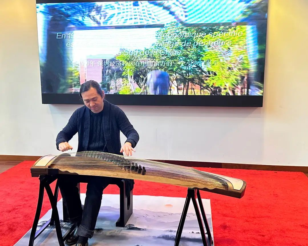 旅法艺术家现场古筝表演。(图片来源:欧洲时报记者孔帆拍摄)