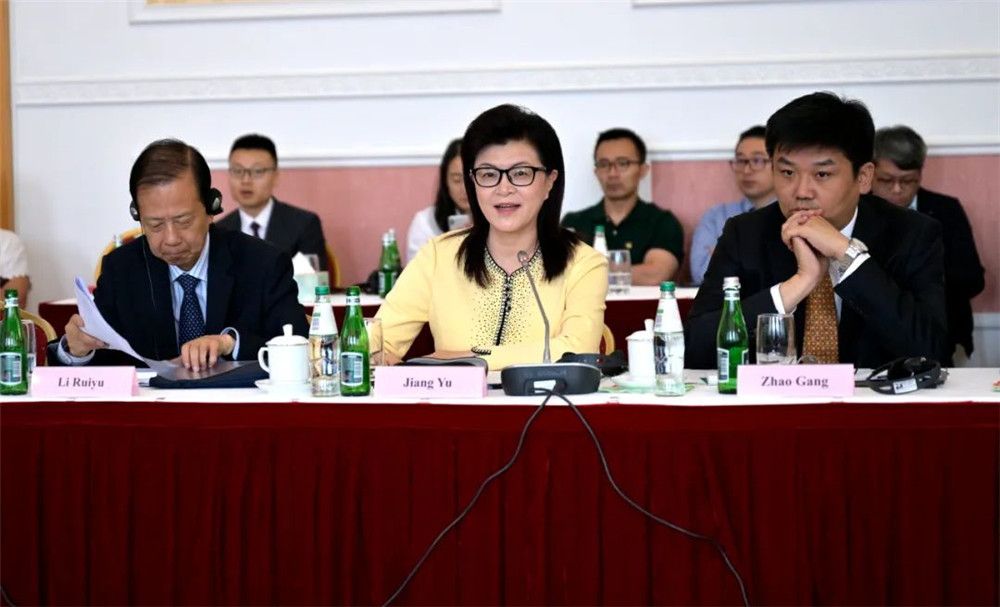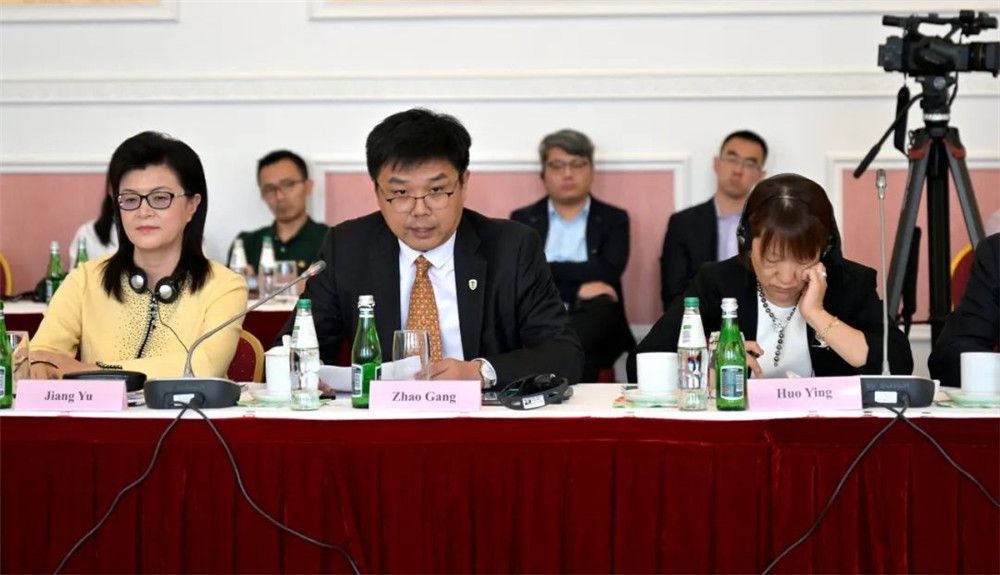 北京国际对话俱乐部发起人兼秘书长、观察者网特邀主持人韩桦(前排右二)主持对话会