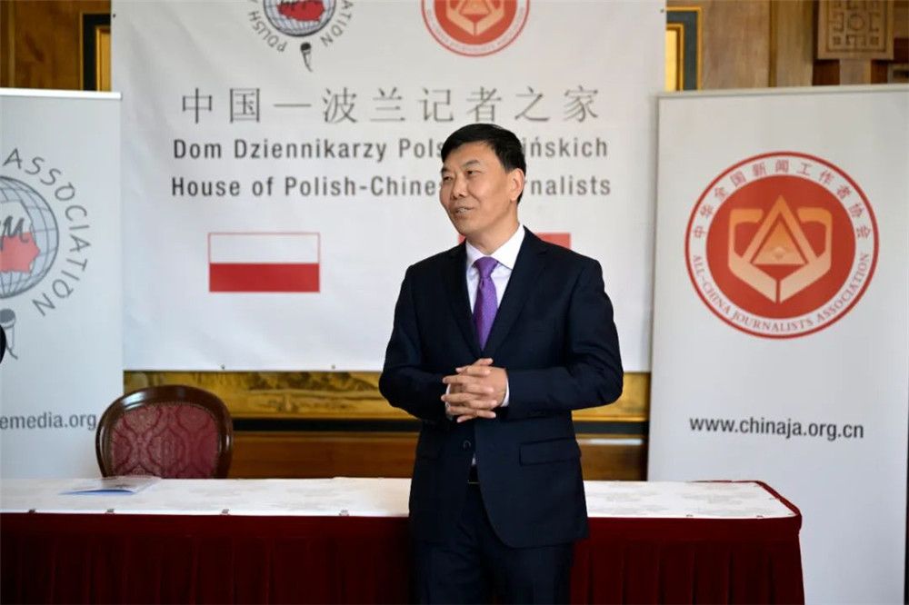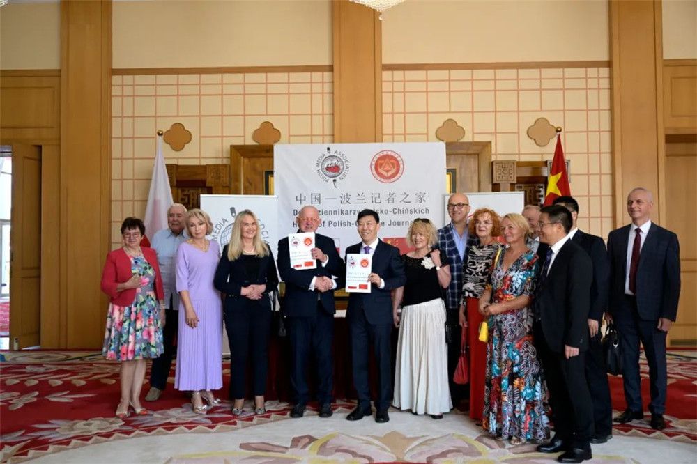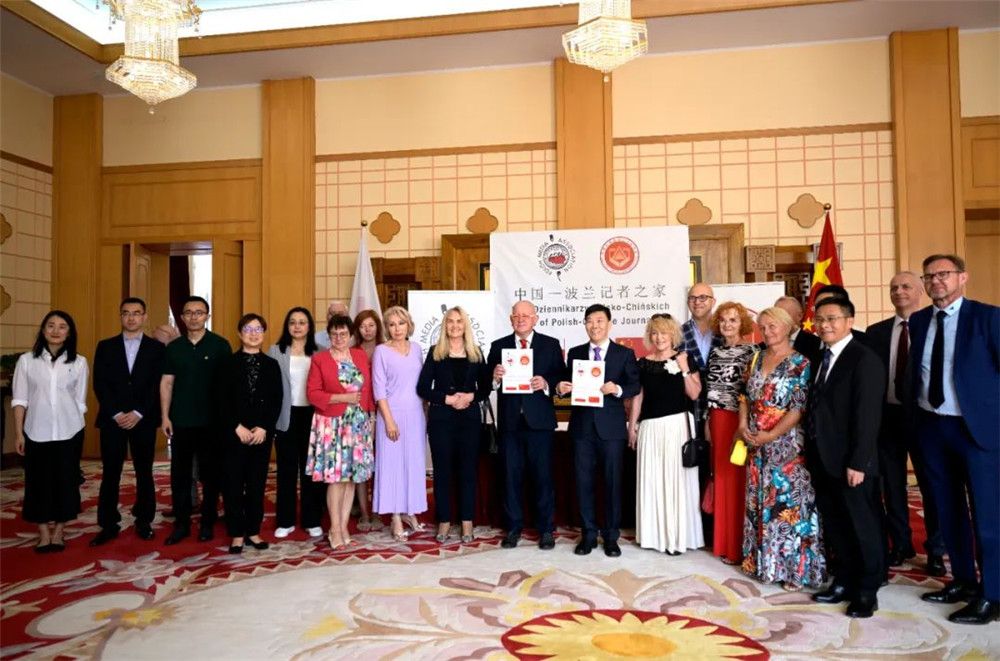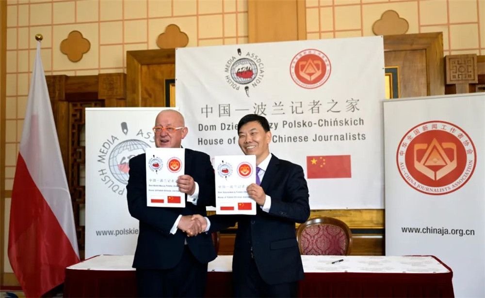 6月26日上午,在中波两国三十余位嘉宾和新闻界代表的见证下,中国记协书记处书记田玉红与波兰媒体协会主席特拉齐克在波兰首都华沙签署“中波记者之家”共建备忘录。中国外交部中国—中东欧国家合作事务特别代表姜瑜、中国驻波兰大使孙霖江出席签约仪式。