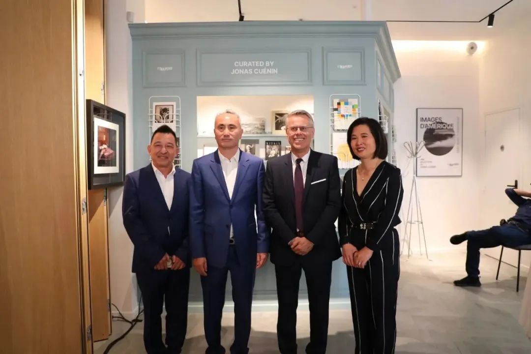国民议会中法友好小组主席艾里克·阿罗泽、执政党巴黎党部对外事务书记叶飞燕与法国华人社团侨领周伟、戴安友合影。(图片来源:欧洲时报记者靖树 摄)
