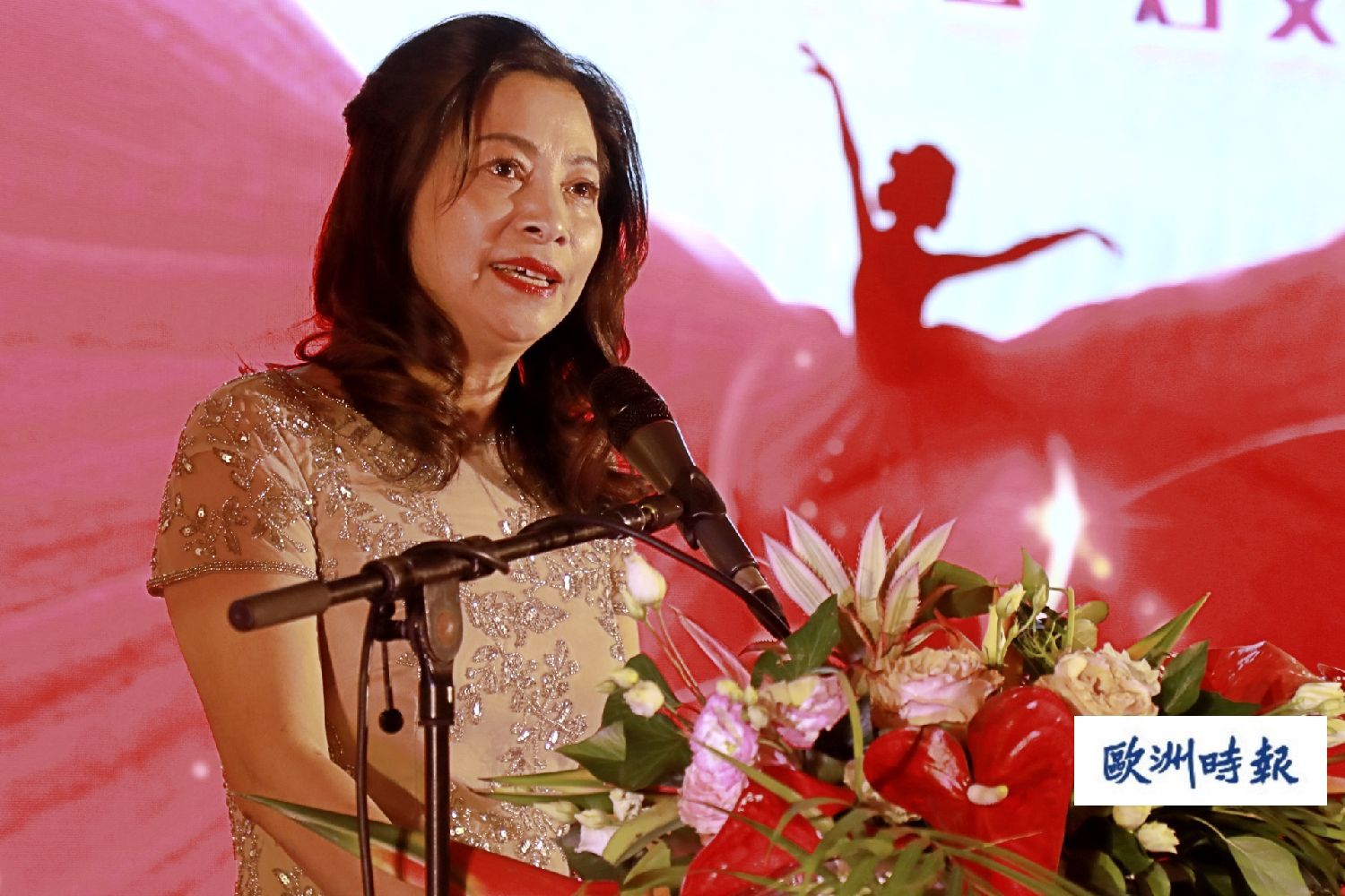 法国华侨华人会主席蔡君柱代表旅法侨界向姐妹们致意节日的问候和诚挚的祝福。