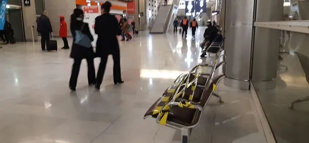 纳瑟利生命中最后几周在戴高乐机场占据的椅子已经被胶条封上。(图片来源:媒体报道截图)