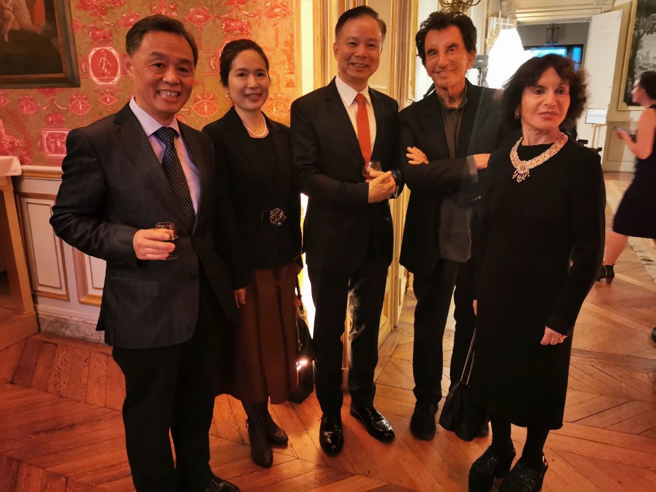 陈力公使夫妇(中)与法国前文化部长雅客·朗夫妇、欧洲时报总编辑梁扬在LA LISTE庆典仪式上合影。(图片来源:柳怡 摄)