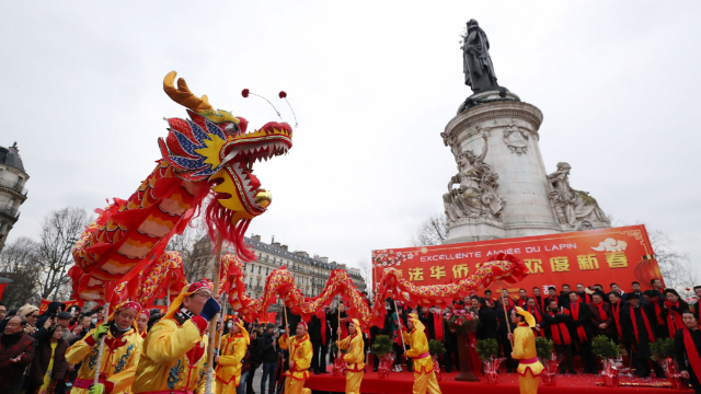 综合France3、BFMTV等法国媒体报道,22日大年初一,法国多个城市举行了兔年新春喜庆活动,吸引了大批法国民众前来参与,场面热闹非凡。