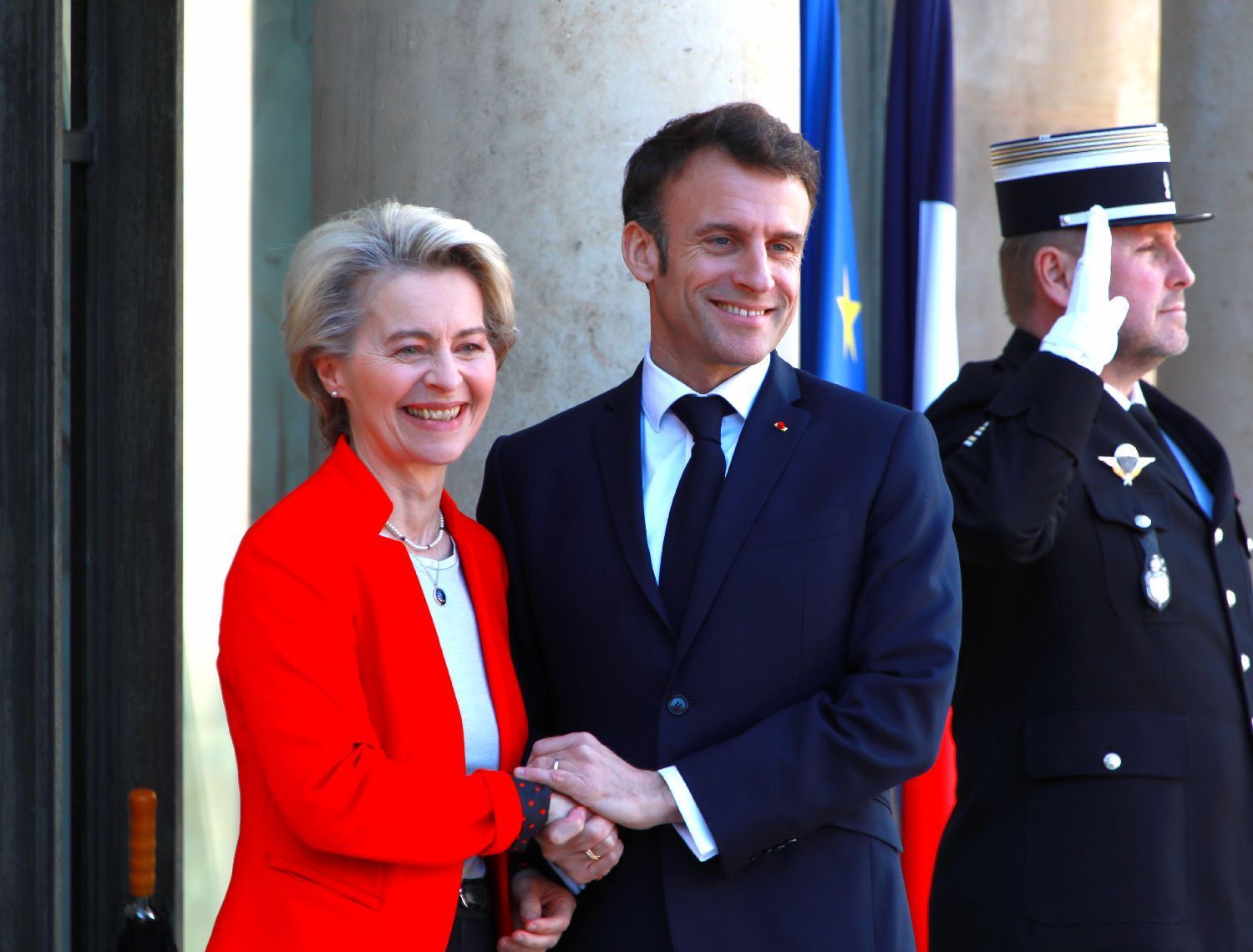 4月3日,马克龙在巴黎会见欧盟委员会主席冯德莱恩,就访华事宜交换意见。(欧洲时报记者欧文摄)