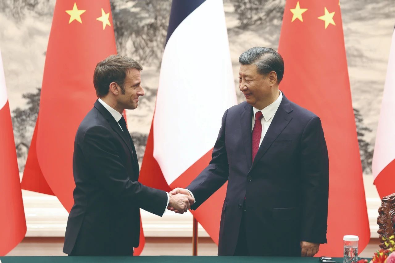 在会谈中,中国领导人向马克龙再次访华表示欢迎,并积极评价了中法关系,称赞两国在这个经历“历史性深刻变革”的世界中,保持着“积极稳健发展的关系”。中方愿保持两国元首密切沟通,希望以明年中法建交60周年暨中法文化旅游年、巴黎奥运会为契机,加强两国合作,同法方携手应对气候变化、能源问题等全球性挑战。