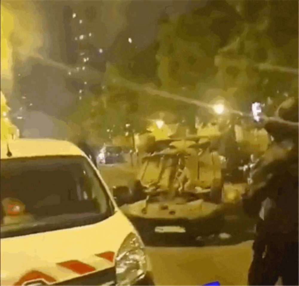 ▲28日晚,法国多地一片火光熊熊。(网络截图)