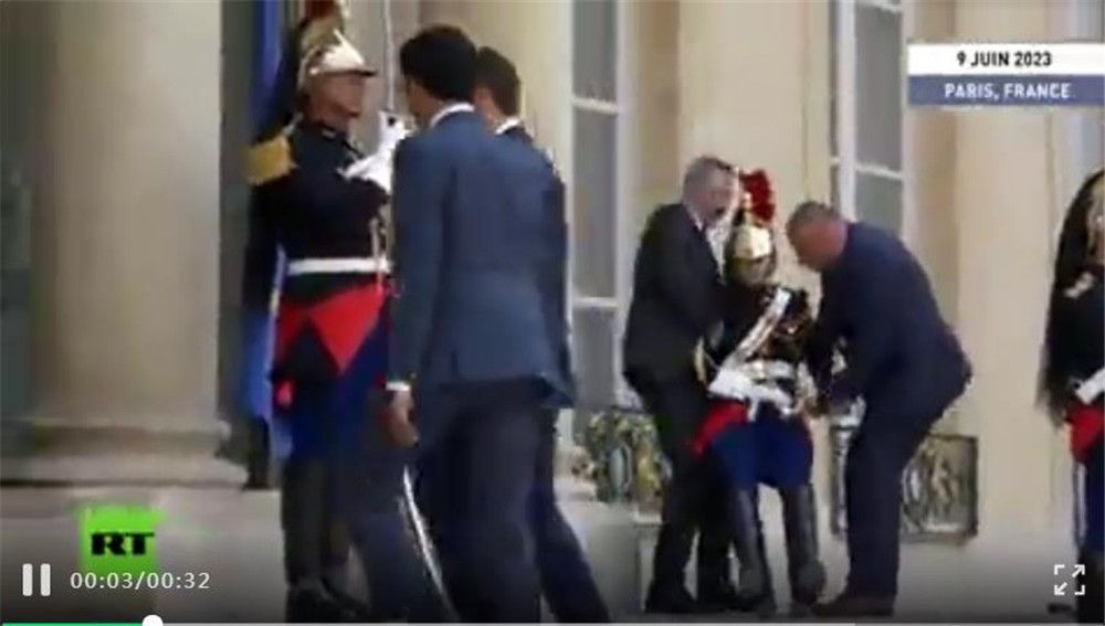 幸好,那个警卫很快就被同事们发现并立即得到了照顾,但总统马克龙对这前所未有的情况完全不当回事,仍然泰然自若,继续他的官方接待。毕竟他国总统还在现场,外交礼仪可是很重要的,共和国总统自然能分清局势。