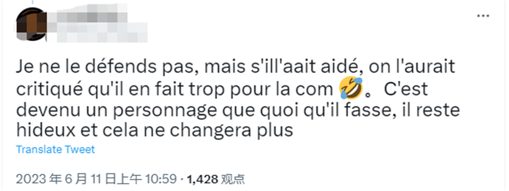 我不是在为他(马克龙)辩护,但如果他帮了忙,他就会被批评为士兵做了太多。他(马克龙)已经成为了一个角色,无论他做什么,他的姿态都会很丑陋,这不会改变了。