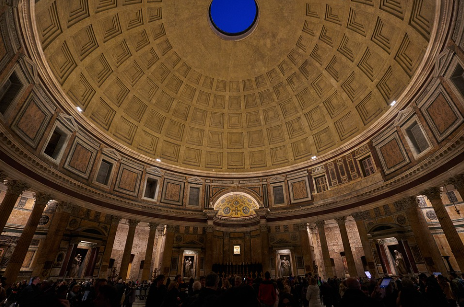 万神殿的穹顶在建成近两千年后仍然是世界上最大的无钢筋混凝土穹顶。(图片来源:Pixabay)