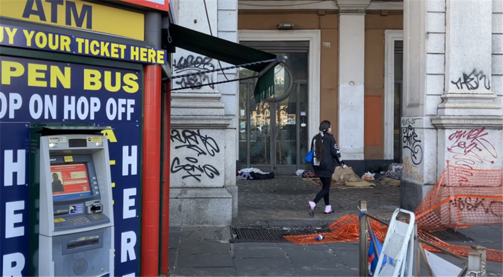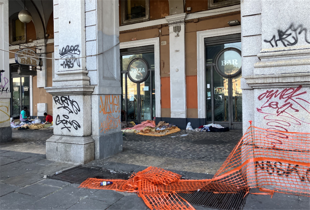 尤其在火车站前广场旁,有数十名无家可归人员长期蜗居在商铺门前的拱廊下。这不但可能导致社会问题和安全隐患,也影响了周围环境的卫生状况。