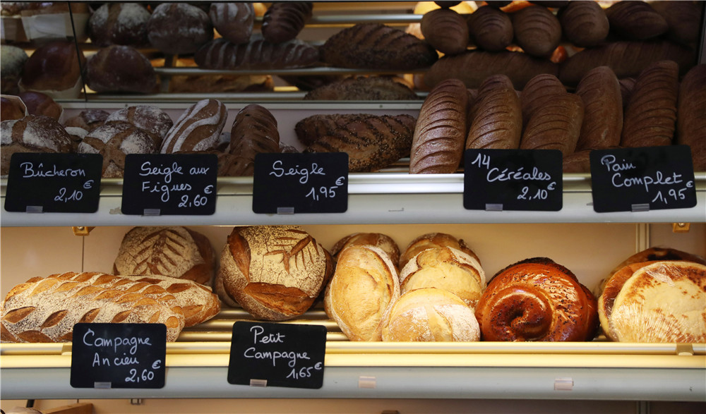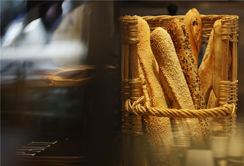 这是4月15日在法国巴黎一家面包店拍摄的待售的法棍。(图片来源:本文图片均自新华社)