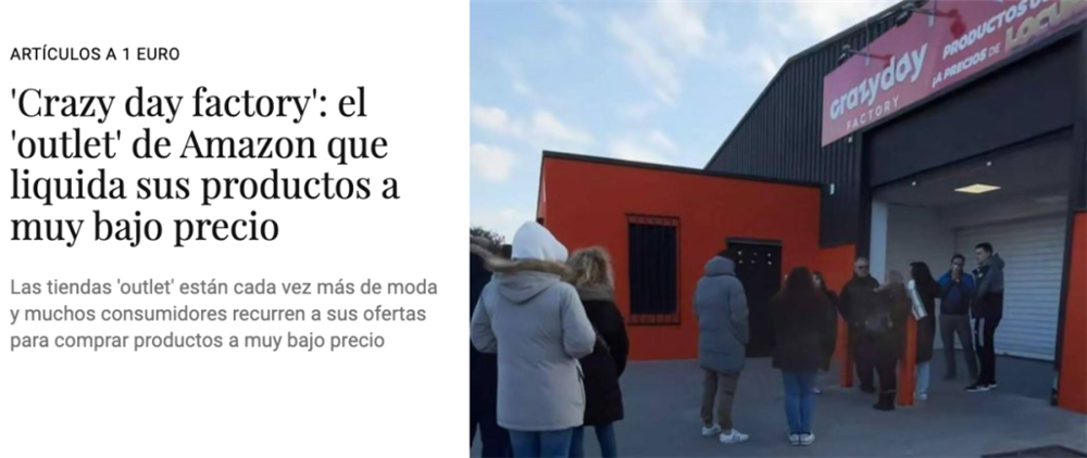 综合《机密报》和Xataka网站报道,两名旅西华商于2022年,在马德里郊外Leganés市,创建了一间专门经销马亚马逊退货商品的直销店“Crazy Day Factory”。仅需1欧元就能买到小家电、服装、电子产品和家居用品。