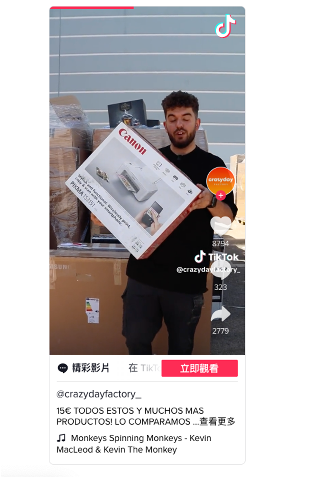 在TikTok上,会显示工厂每周的最新库存,价值800欧元的40寸电视机只要15欧元就能得到,还有许多知名品牌的打印机、微波炉或衣服等。据介绍,这间亚马逊退货产品直销店自开设以来,就在西班牙社交网络上名声鹊起。华商的经营策略是:店内产品的更新周期为每周一次。每个星期五都会补上新货。当天的产品价格为每件15欧元,之后每天价格都会逐渐降低。直到下个周四的时候,所有产品的价格都是1欧元。