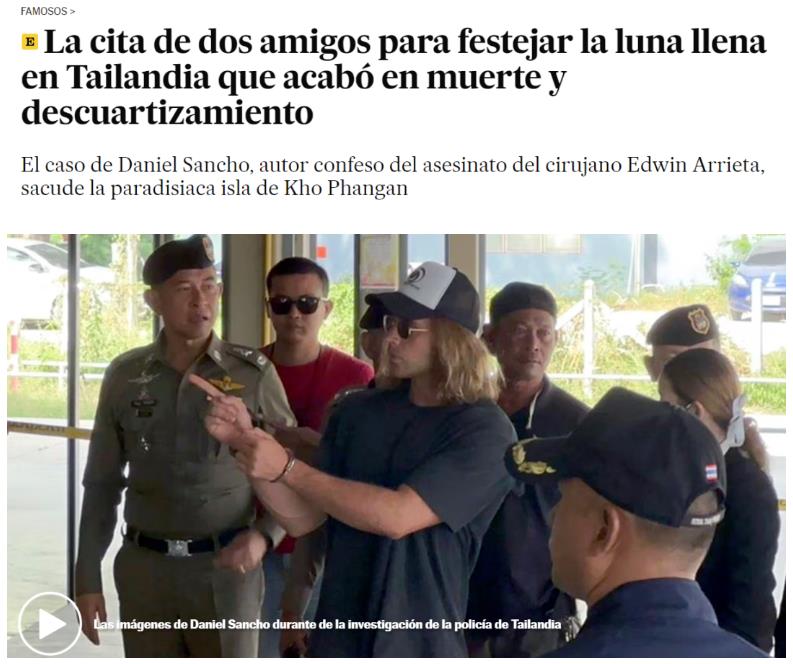 【欧洲时报】日前,西班牙著名星二代,年仅26岁的厨师丹尼尔·桑乔·布朗查诺(Daniel Sancho Bronchalo)在泰国警局,针对杀死44岁哥伦比亚籍整容医生并且将其残忍肢解的犯罪行为供认不讳。丹尼尔·桑乔是西班牙著名影星鲁道夫·桑乔之子,也是西班牙传奇演员菲力克斯·桑乔的孙子。