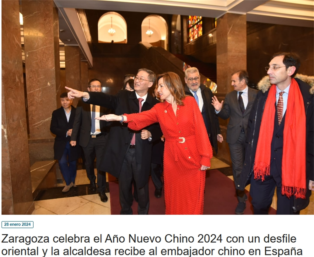 大使表示,将为来自亚洲的大型企业在首府阿拉贡落户建立必要的关系。姚敬大使上任四个月,1月28日对萨拉戈萨市政府进行了机构访问,并与市长娜塔莉亚·丘埃卡(Natalia Chueca)就这座城市与中国的联系以及未来的联系进行了交谈。