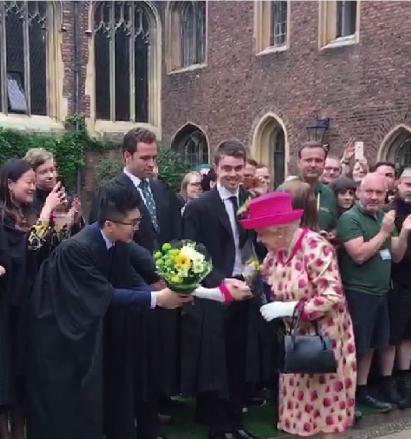 李博灏在女王到访剑桥大学时向她献花。