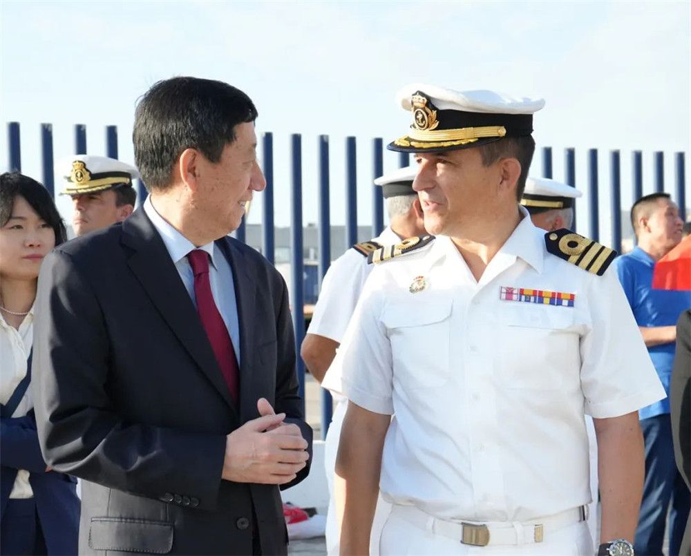 吴海涛大使与西班牙海军代表共同迎接中国军舰抵达。