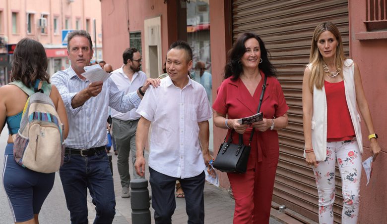 马德里自治区政府官员在朱晓海会长陪同下于Usera街头走访。