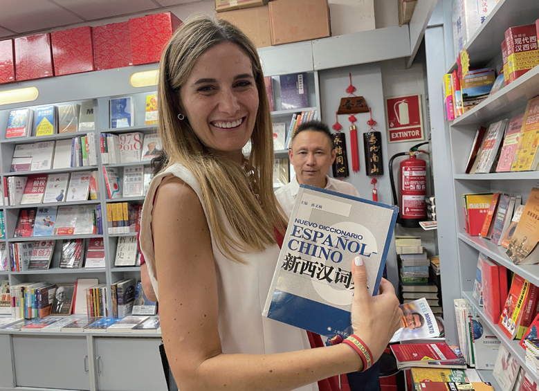 Usera新任区长索尼娅·塞亚·金塔纳在中华书店手捧《新西汉词典》书籍。