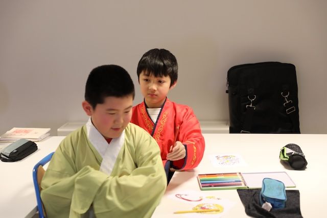 中国电视报道,活动中播放了不久前在中央广播电视总台综艺频道播出的《衣锦天下》特别节目,身着秀美汉服的仲月茹结合节目介绍了汉服的特点和演变过程,纹样的来源、组成和寓意,以及相关历史背景和独特的中华文化韵味。在仲月茹的讲解下,学生们在纸上描绘出不同纹样,既有龙凤呈祥的纹样,也有各类花卉的图案,有的学生还根据自己对色彩的理解,涂上各种各样的颜色,领略到在传统上创新的意味。