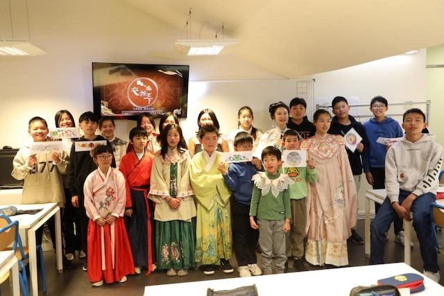 为了让法国华裔青少年深入了解中华传统服饰文化,近日巴黎的中文学校特别聘请法国博衍汉章传统研习会会长仲月茹(仲巾函)向学生们开展了汉服讲座及体验活动,华裔学生通过观看中央广播电视总台精品节目、沉浸式体验汉服,亲身感受中华传统文化的魅力。