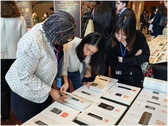 美国时间6月9日,值“文明对话国际日”庆祝之际,由浙江省人民政府新闻办公室、西泠印社精心策划的“文明互鉴·世界愿景”图形印展在联合国总部启幕,中国常驻联合国代表傅聪大使,联合国副秘书长、文明联盟高级代表莫拉蒂诺斯以及部分国家常驻联合国代表或代办等中外嘉宾观展。这场展览突破传统,以“世界印章史”的宏阔视野和“大印学”的创新格局,将人类非物质文化遗产——中国篆刻艺术,通过30多米的长卷、一帧帧的册页、193个手卷、千余份互动文创,化作连接193个成员国的独特文化纽带,在方寸印石间奏响了文明交融的和谐乐章。