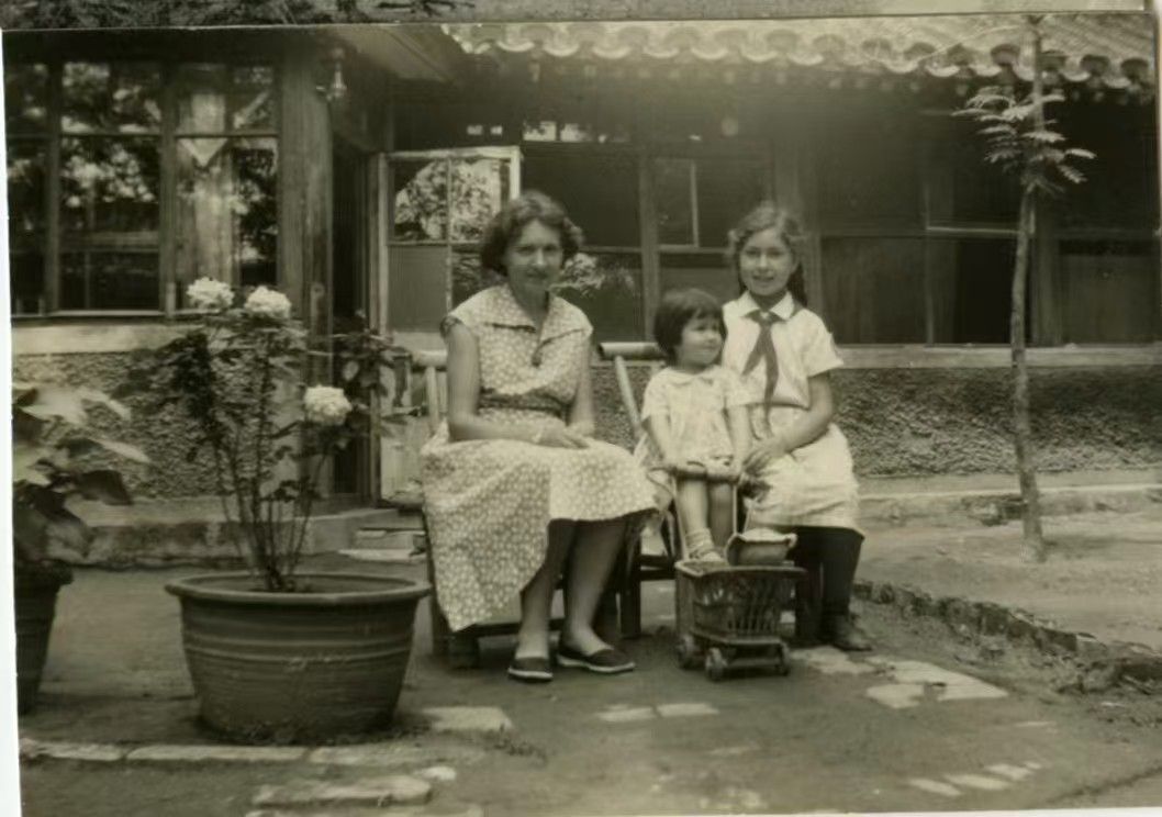 华新民1956年两岁时在无量大人胡同家里,与母亲和姐姐。(图片来源:受访者供图)
