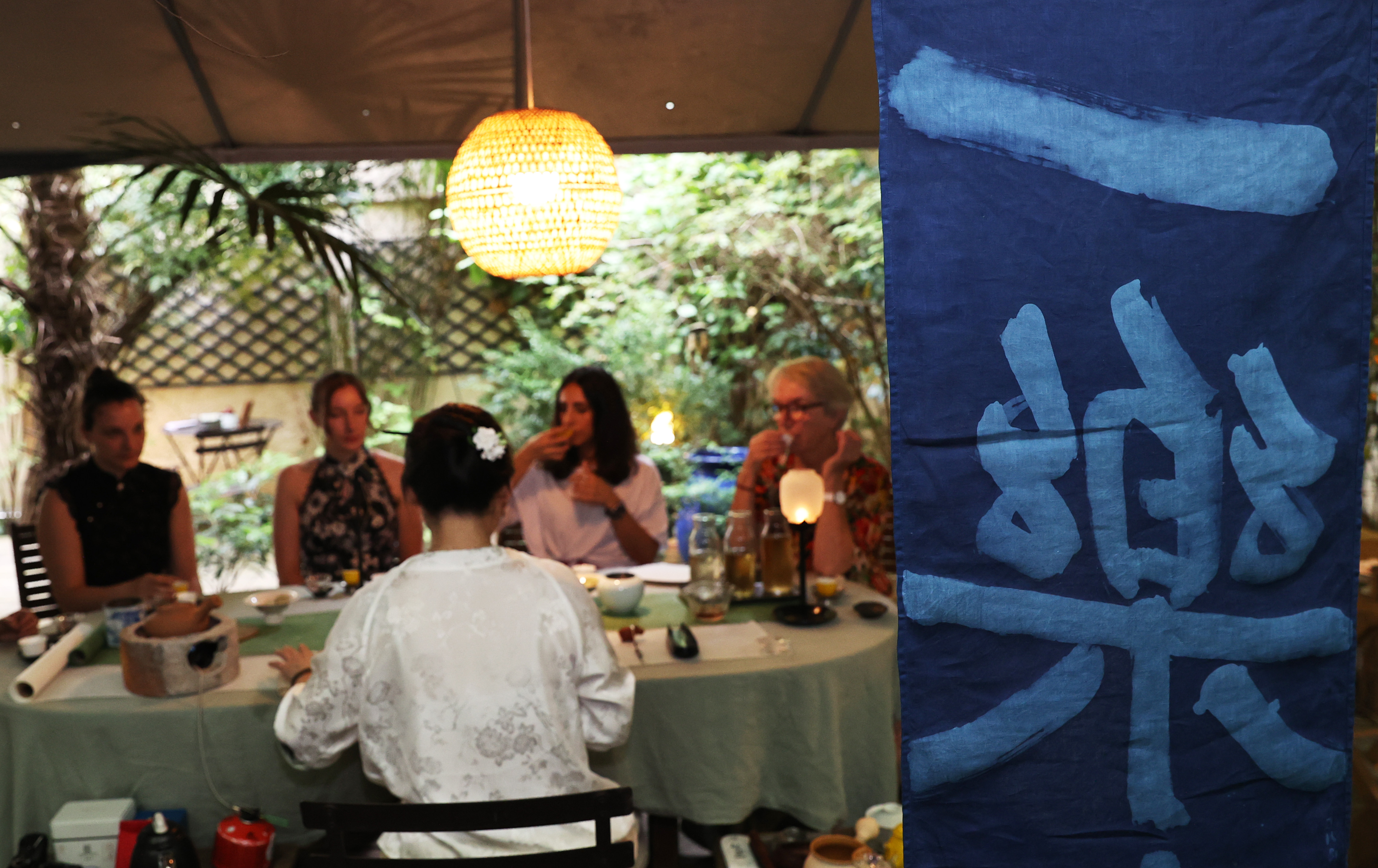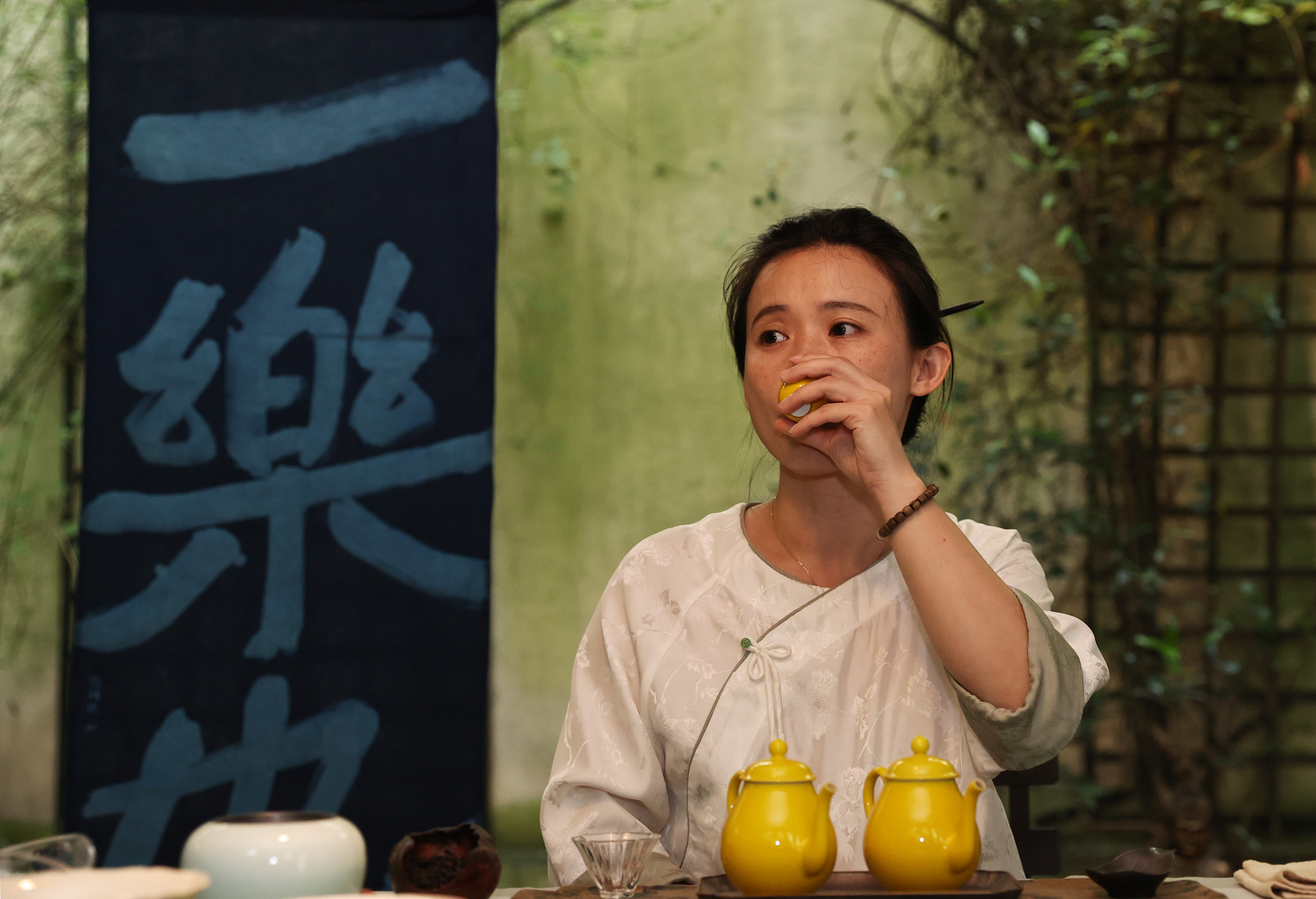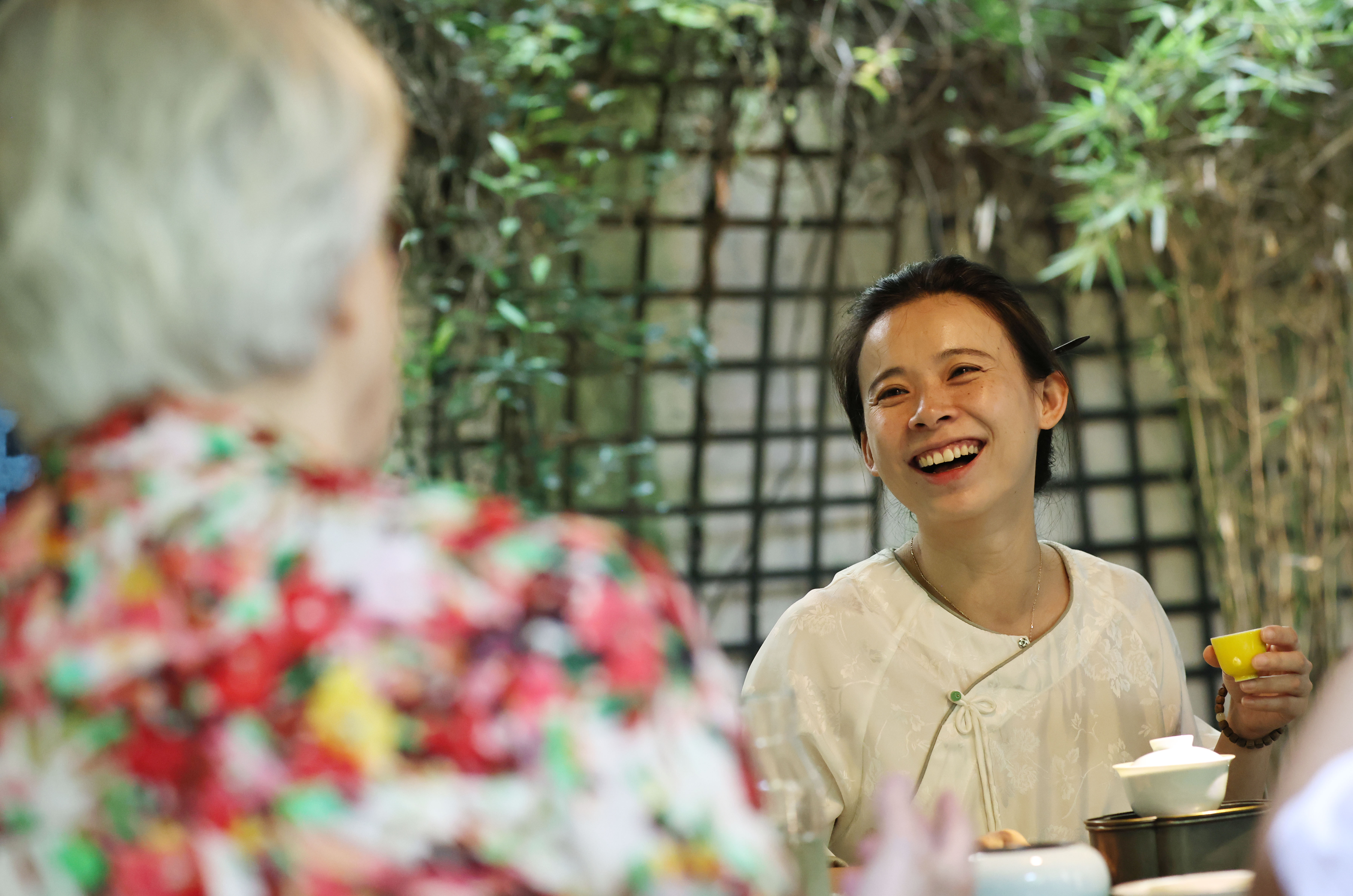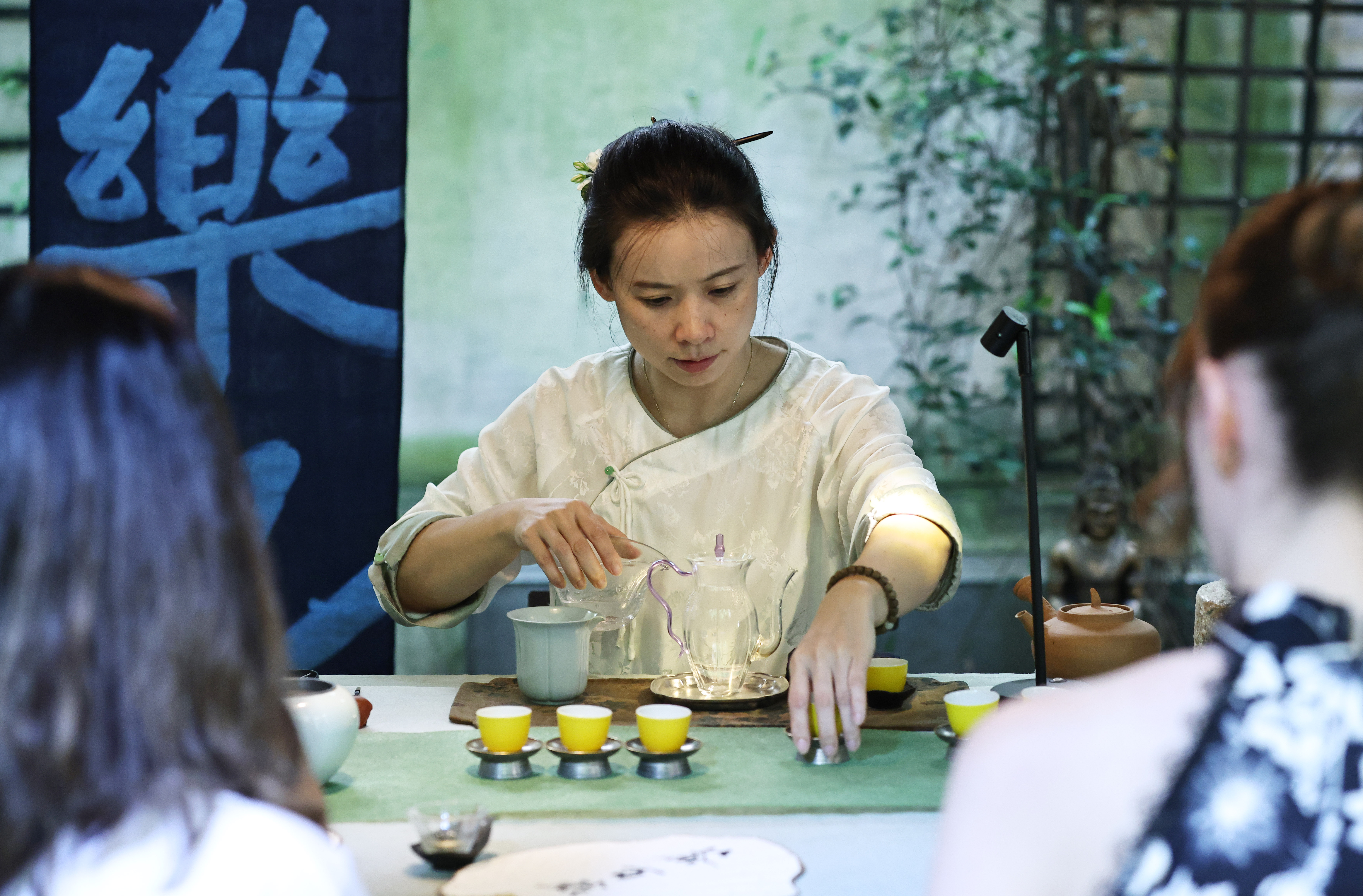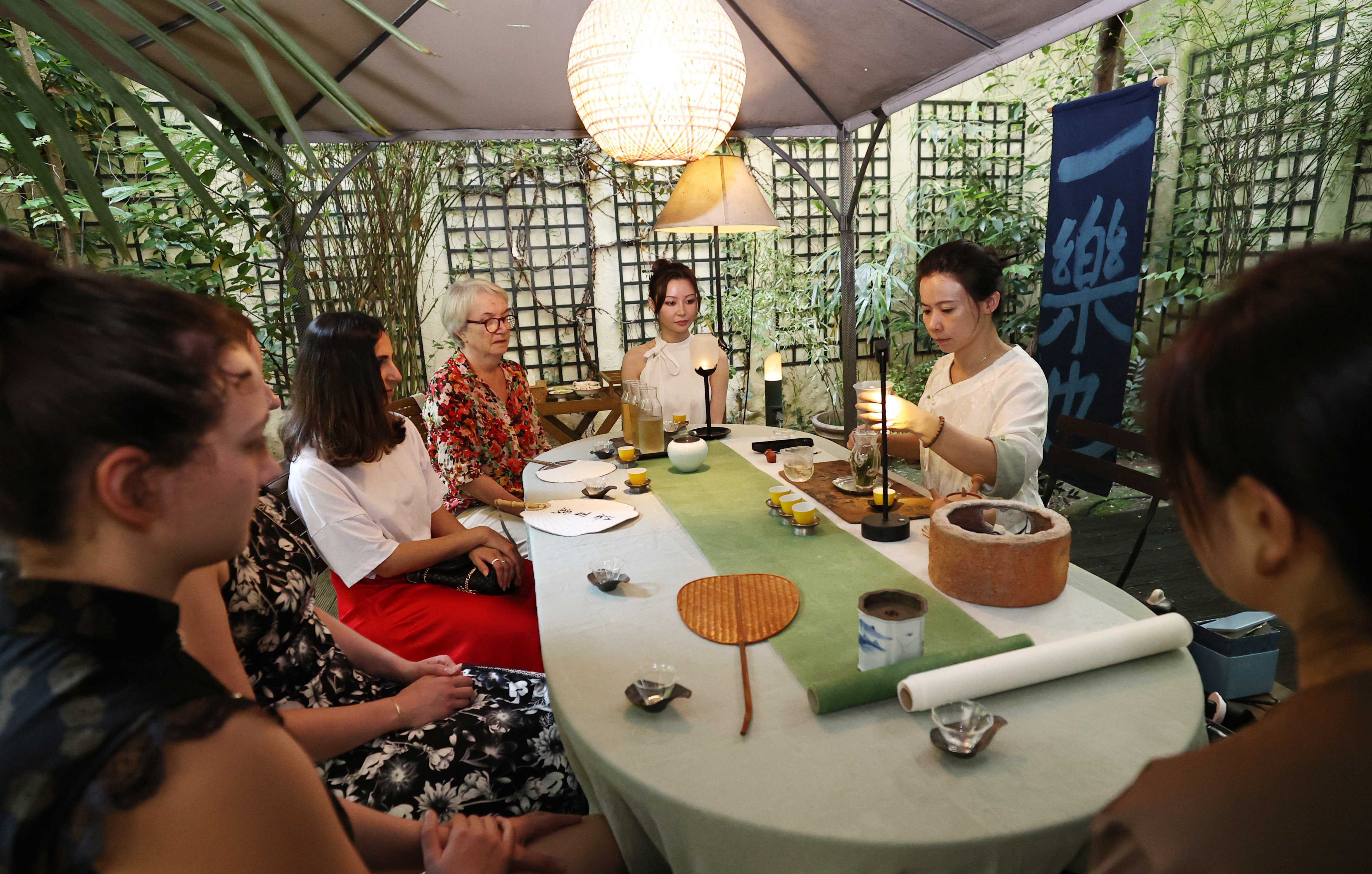 茶艺师张乐2022年在法国巴黎创立了“一乐也”中国茶工作室,每周在充满中式园林风情的小院里为来自法国、中国、摩洛哥、日本等地的学生上一到两次茶艺课。