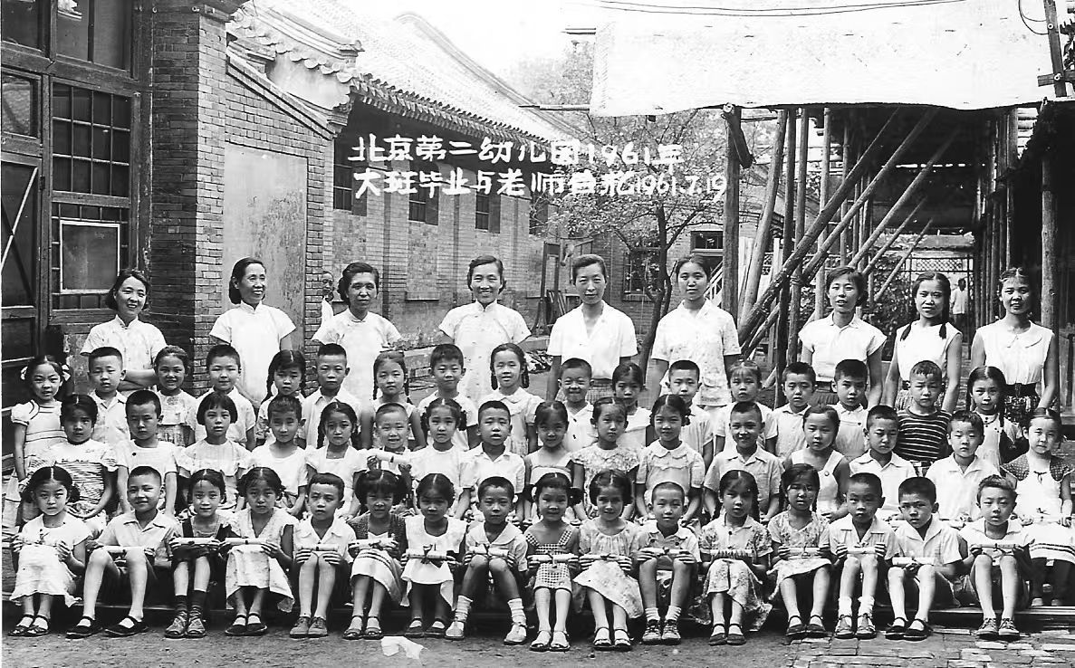 北京第二幼儿园1961年的合影,前排右七为华新民。(图片来源:受访者供图)