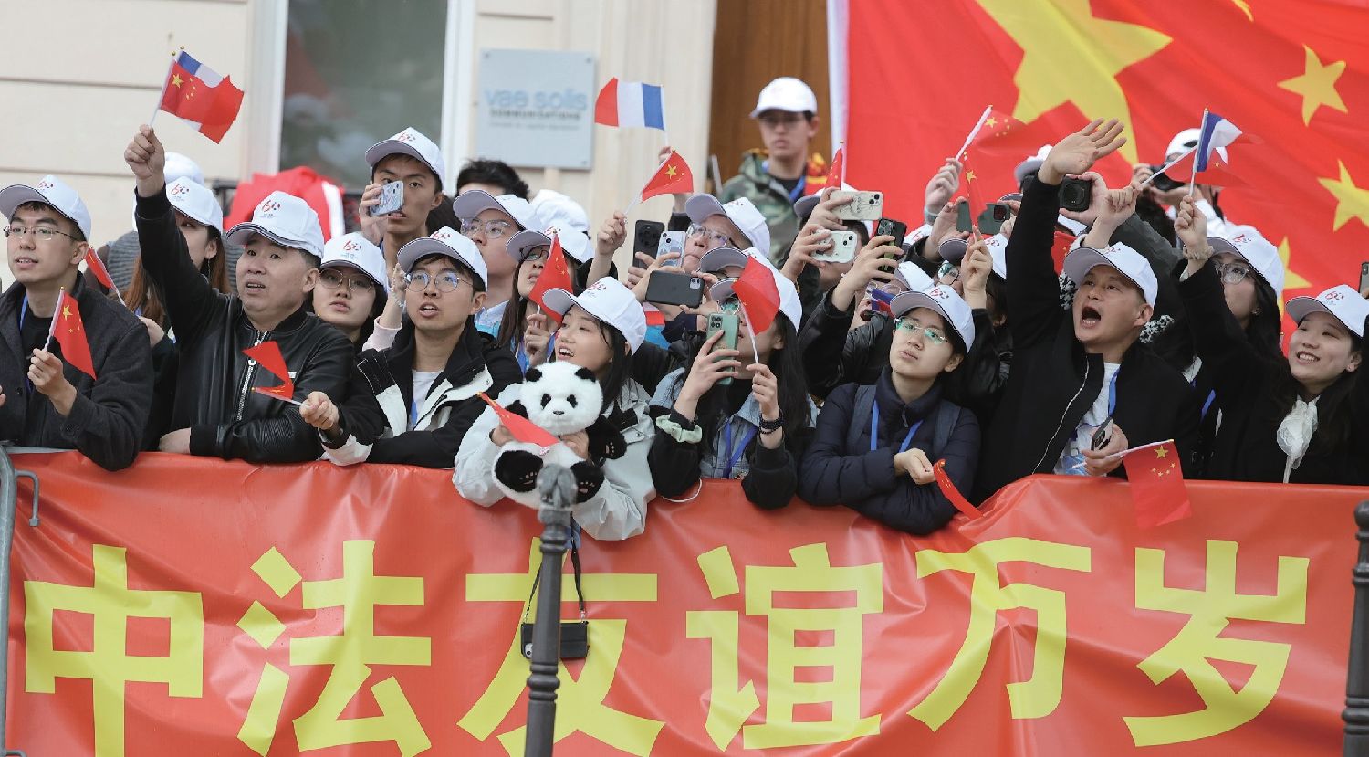 当地时间5月5日,中国国家主席习近平抵达巴黎,开始对法国进行国事访问。在巴黎街头,华人华侨和中国留学生高举“中法友谊万岁!”等横幅,挥舞中法两国国旗,热烈欢迎习近平主席到访。中新社