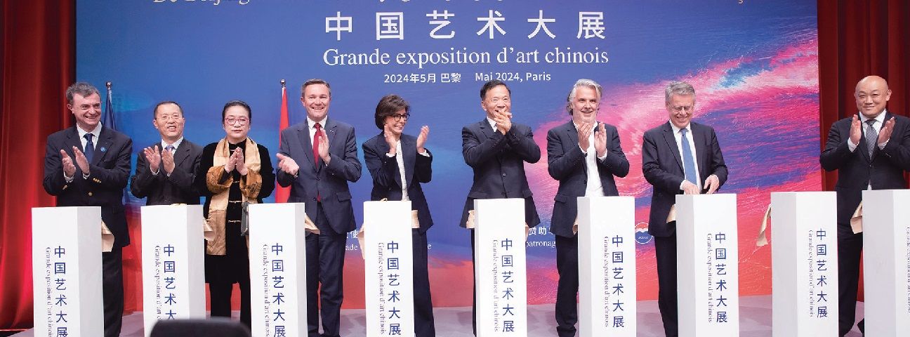 中宣部副部长、中央广播电视总台台长慎海雄,法国文化部长达蒂,法国国家奥林匹克和体育委员会主席拉帕蒂恩,法国职业足球联盟主席拉布吕纳,中国书法家协会主席孙晓云,法国国民议会法中友好小组主席阿洛泽等嘉宾共同为“从北京到巴黎——中法艺术家奥林匹克行”中国艺术大展揭幕。