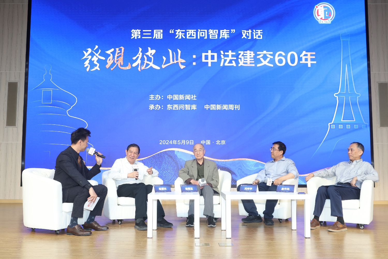 5月9日,第三届“东西问智库”对话活动在北京举行。对话活动由中国新闻社主办,主题为“发现彼此:中法建交60年”。图为圆桌对话。(图片来源:中新社)